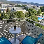 Grand Hotel Nirvana de Sunny Beach oferece quartos com varanda e local de descanso, com controle de temperatura, juntamente com Wi-Fi gratuito e TV de tela plana com canais via satélite. Chaleira elétrica e refrigerador bem como bidé, casa de banho separada e chuveiro também estão incluídos.